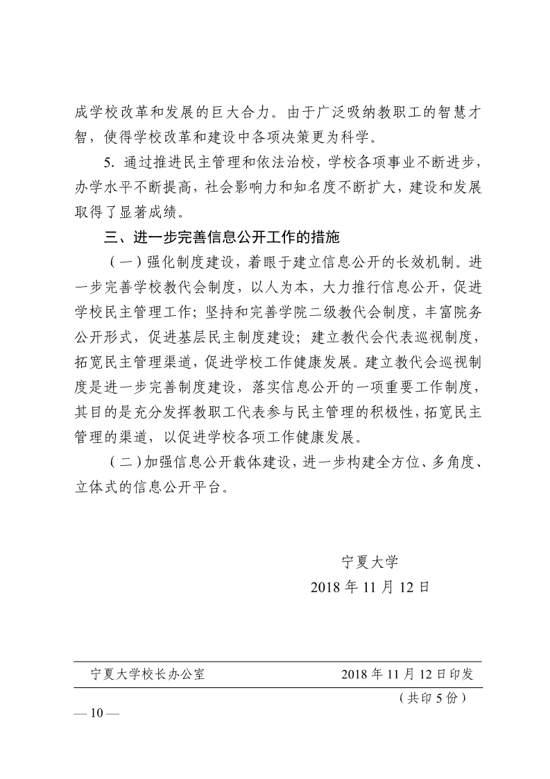 宁夏大学2017-2018学年度信息公开工作年度报告