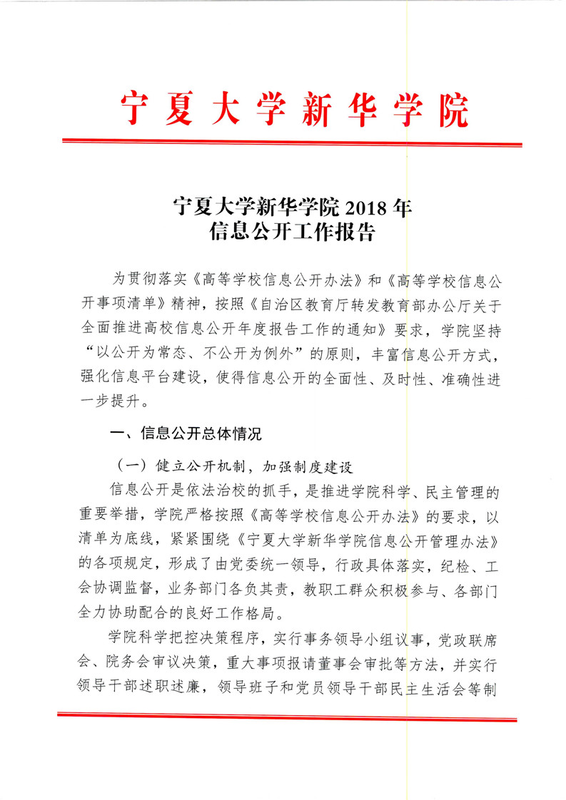 宁夏大学新华学院2017-2018学年度信息公开工作报告